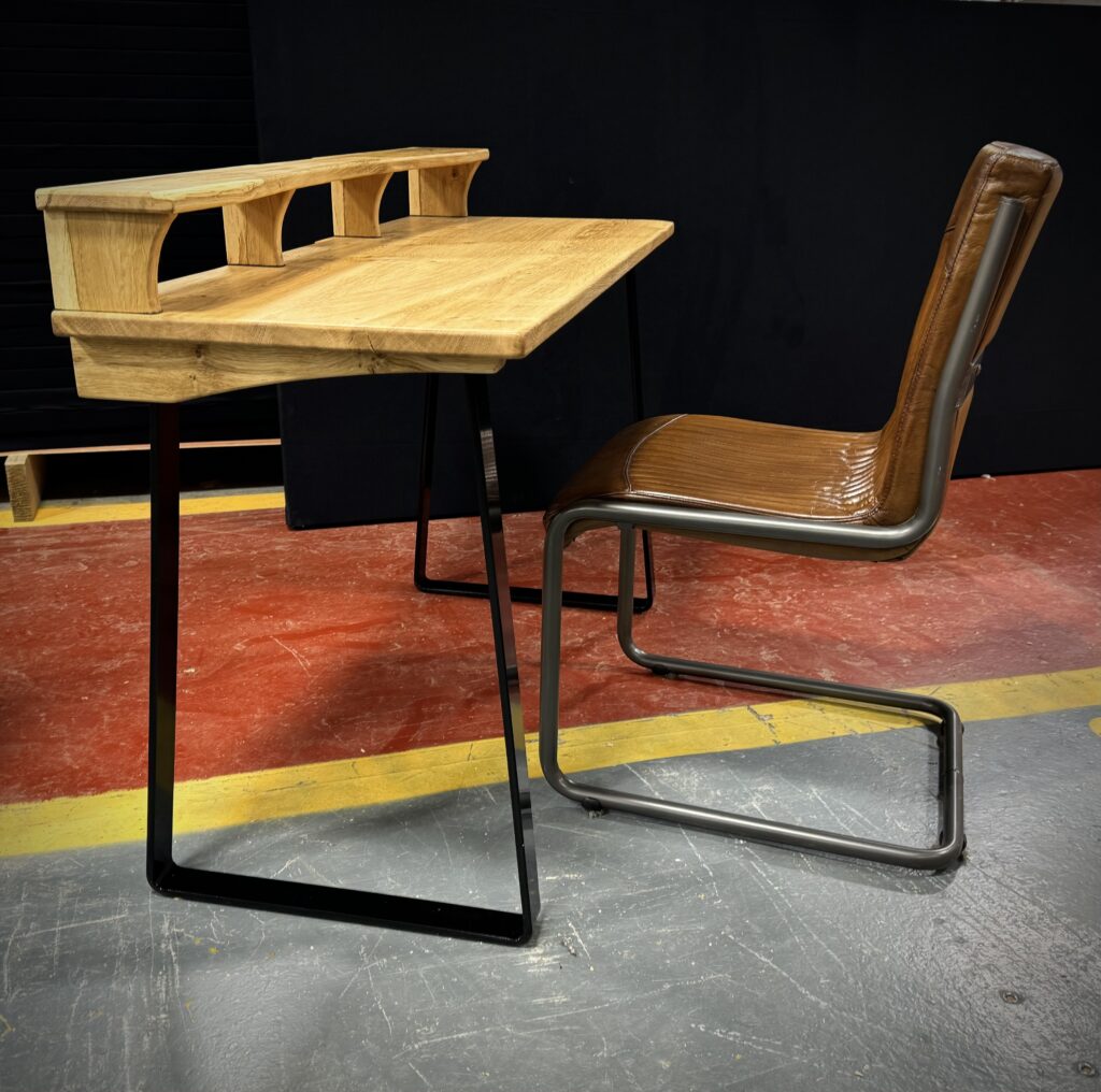 Dowally Desk in solid Scottish Oak featuring stylish hand crafted steel legs, powder-coated in gloss black: £650.